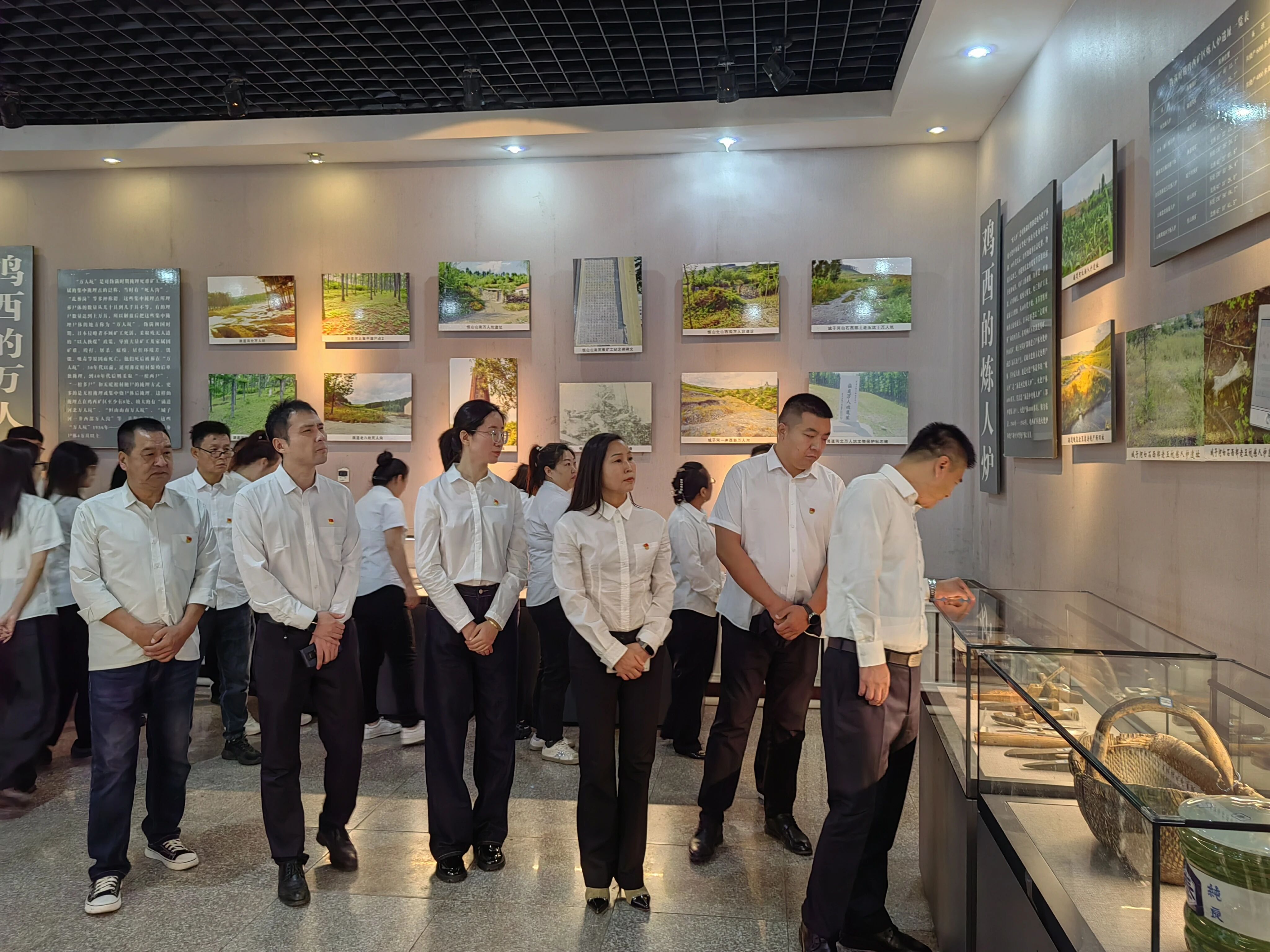 活动中,全体人员在讲解员带领下,依次参观“炼人炉”“万人坑遗址”陈列区。泛黄的照片、锈迹斑斑的武器、幸存者的证言……一件件实物史料还原了日军侵华的滔天罪行,也展现了鸡西人民不屈不挠的抗争历程。在“万人坑”遗址复原区,大家驻足默哀,深切缅怀遇难同胞,感受“落后就要挨打”的历史教训。